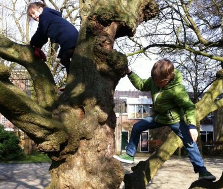In de Doelenplein staan ook nog twee klimbomen, geliefd bij (klein)kinderen en opa’s, niet in het laatst onze voorzitter. Een geluk bij dit ongeluk is dat deze bomen deze storm hebben overleefd.